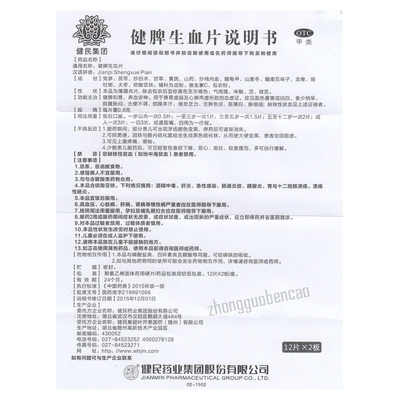 健民健脾生血片 每盒24片 1盒装 保质期24个月 Item: Jianmin Jianpi Shengxue Pian Quantity/Box: 24 Tablets Shelf Life: 24 Months Package Included: 1 Box of Jianmin Jianpi Shengxue Pian |