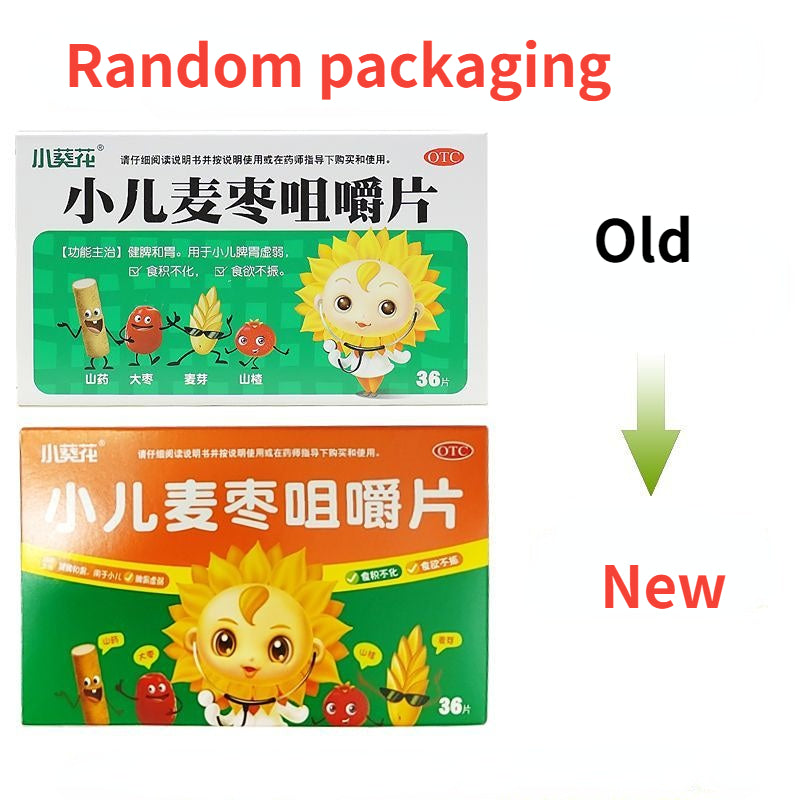小葵花小儿麦枣咀嚼片 每盒36片 1盒装 保质期24个月 Item: Xiaokuihua Xiao'er Maizao Jujue Pian Quantity/Box: 36 Tablets Shelf Life: 24 Months Package Included: 1 Box of Xiaokuihua Xiao'er Maizao Jujue Pian |