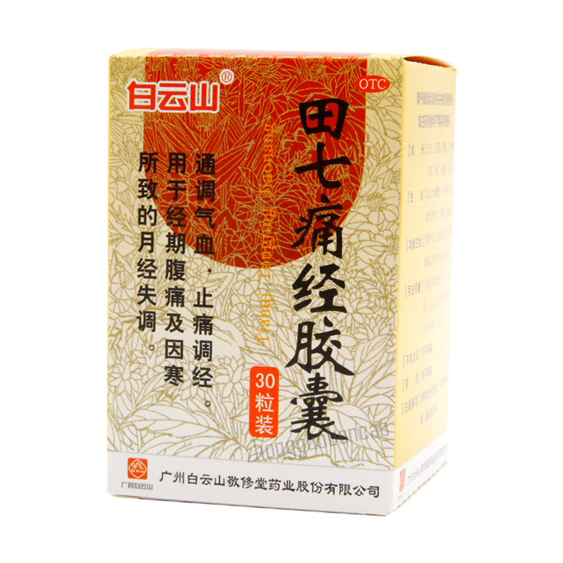 白云山田七痛经胶囊 每盒30粒 1盒装 保质期30个月 Item: Baiyunshan Tianqi Tongjing Jiaonang Quantity/Box: 30 Capsules