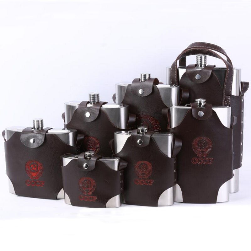 4 8 18 38 48 64 88 108 128 178 OZ Stainless Steel Hip Flask Liquor Whisky Portable Pocket Flasks Alcohol Bottle with Belt Case