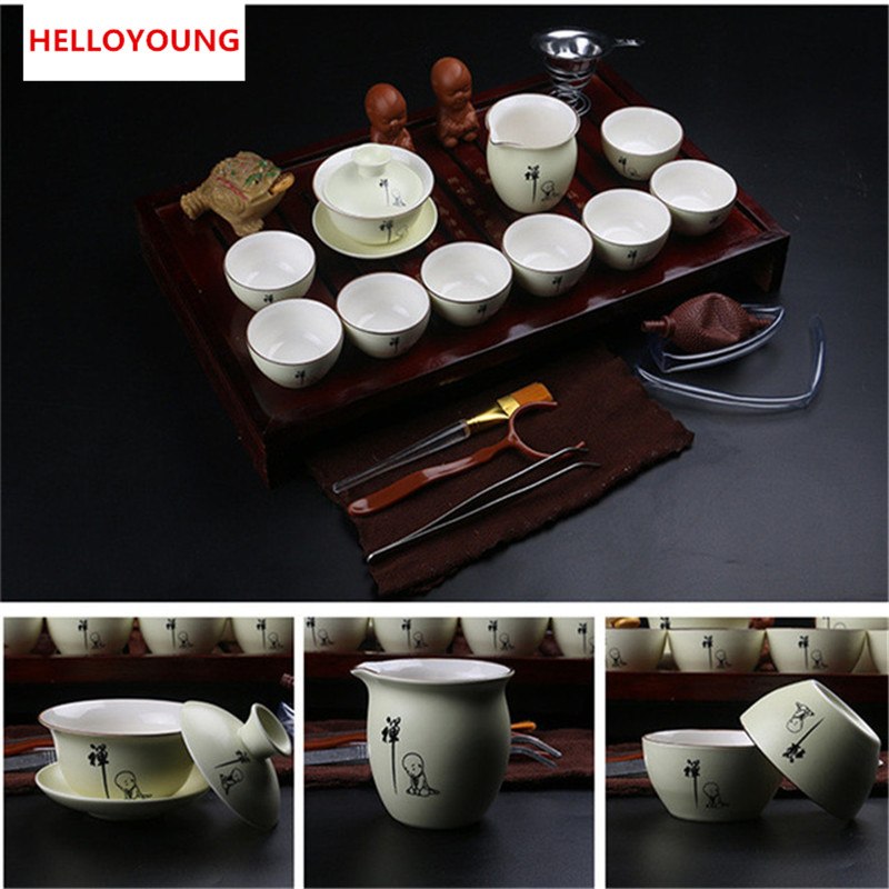 Chinese Kung Fu Tea Set Drinkware Purple Clay ceramic include Tea Pot Cup,Tureen Infuser Natural wood Tea Tray Chahai
