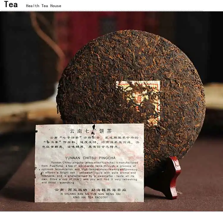 Pu'er Ripe tea is Yunnan Dayezhong, sun dried green tea as Raw material, after fermentation and processing of tea. The color is brown and red, and its taste is pure and harmonious. It has unique Chen Xiang.Product detail:Introduction: Pu'er tea is mainly produced in Xishuangbanna, Linyi, and Puer in Yunnan Province. Pu-erh tea is rich in orange and yellow, long-lasting aroma, unique flavor, strong mellow taste and long-lasting resistance to foam. Pu'er tea has many functions such as lowering blood fat, reducing weight, inhibiting digestion and digestion, warming the stomach, increasing fluid, quenching thirst, drinking and detoxifying. Can Qingwei Sheng Jin, digestion and phlegm, hangover, detoxification, diuretic and cold, cough and phlegm, lower blood cholesterol. Pu'er Ripe tea is Yunnan Dayezhong, sun dried green tea as raw material, after fermentation and processing of tea. The color is brown and red, and its taste is pure and harmonious. It has unique Chen Xiang. Product attributes: Grade: AAAAA Puer Type: Ripe Puer, Shu Puerh Total Weight: 357g / 12.59oz Packing list: 1 * Puer tea cake Shelf Life: The longer the better Place of Production: Yunnan China Production Date: 2006 Storage: Cool and ventilated place, avoid direct sunlight. Shaiqinmao tea leaves of Yunnan big leaves species ( Without any additive) ![]() ![]() ![]() ![]() ![]() ![]() ![]() ![]() ![]()